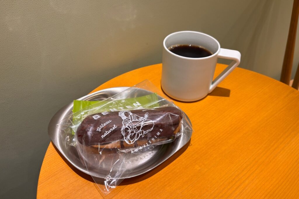 ③その日の豆は決まっていますが、店内でコーヒーを飲むことも可能です。私がお伺いした日はペルー有機の豆でしたが、若干酸味があるもののとてもバランスがよく、一緒に注文したエクレアととても相性が良かったです。